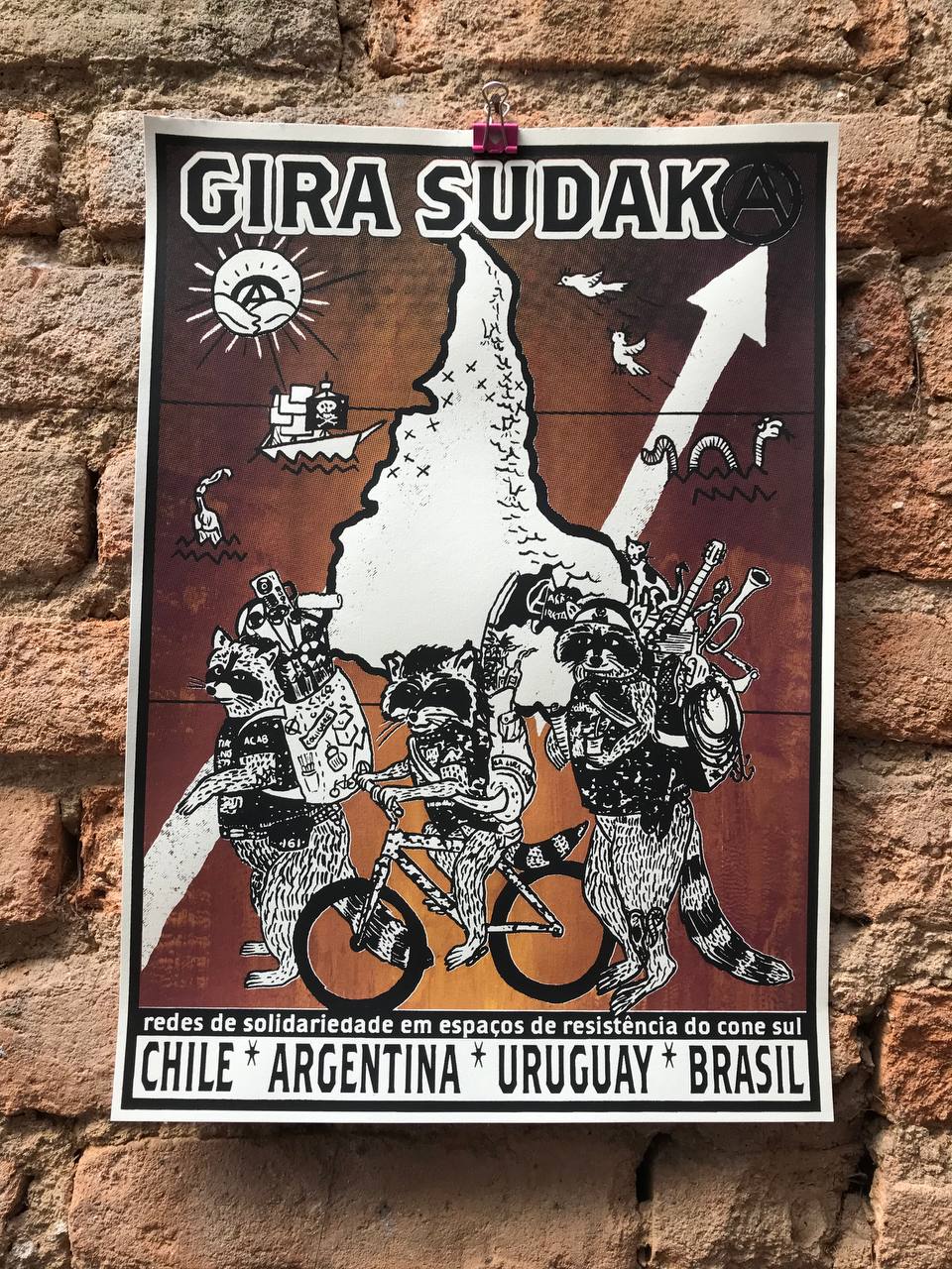 Pôster produzido em serigrafia para ajudar nos custos de mobilidade da Gira Sudaka. Clique aqui para ler mais o evento